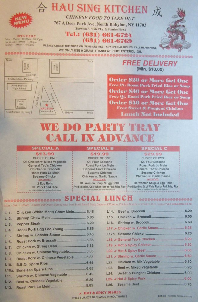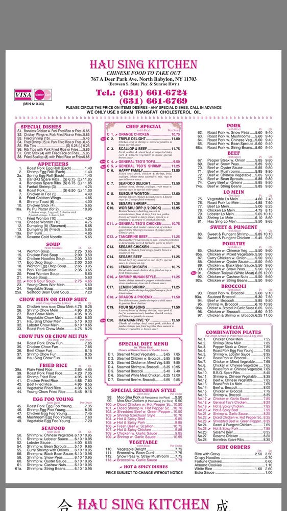 Introducing Hau Sing Kitchen, a delightful Chinese restaurant located at 767 Deer Park Ave, North Babylon, NY. This vibrant eatery captures the essence of authentic Chinese cuisine, featuring an extensive menu loaded with mouthwatering dishes, including a wealth of vegetarian options that cater to all palates.